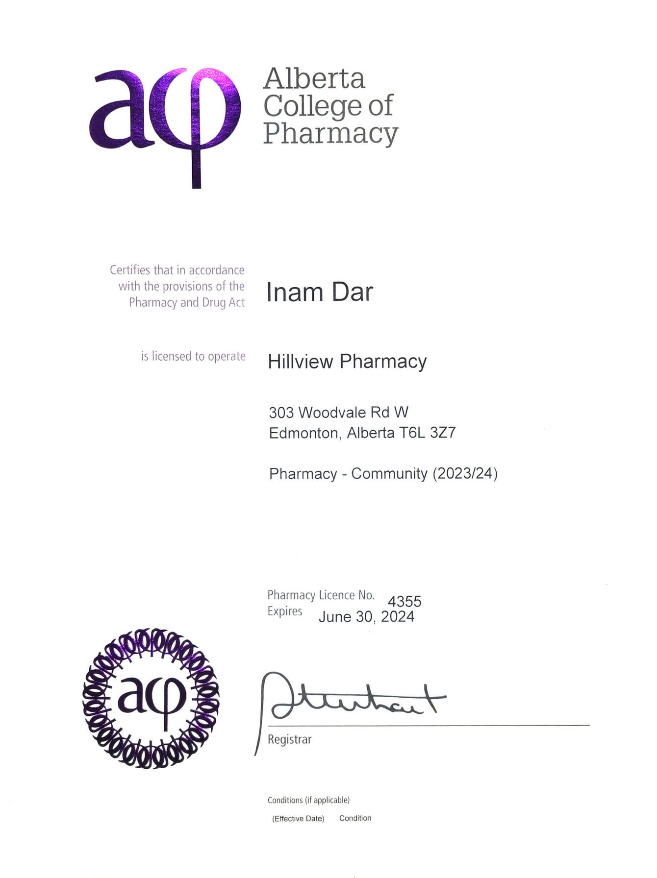 We take responsibility for pharmacy practice by setting and enforcing high standards of competence and ethical conduct.If you are still concerned, you may contact the Alberta College of Pharmacy toll free at 1-877-227-3838 or by visiting the college website abpharmacy.ca